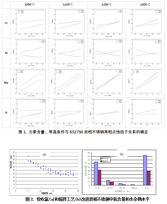 針對雙相不銹鋼兩相比例、兩相PREN值易失調的問題,通過兩相比例平衡準則和Cr當量、Ni當量修正系數的確立,有效提高了雙相不銹鋼的組織預測準確性;通過兩相PREN值平衡準則的確立,實現了基于N元素的兩相PREN值平衡有效控制方法,并結合成分控制獲得系列雙相不銹鋼高耐蝕性能所需的精準等溫控制工藝。