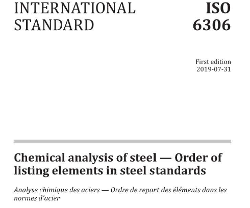 ISO 6306:2019規定了產品標準應如何排列鋼和大多數其他鐵基合金中化學元素的順序,同時,該標準也明確指出,但該規則不適用于鑄鐵類產品標準。