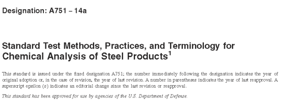 [2] ASTM A751, Standard Test Methods, Practices, and Terminology for Chemical Ana is of Steel Products