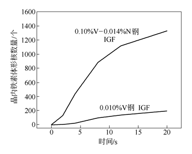 圖2 氮對晶內(nèi)鐵素體形核數(shù)量的影響