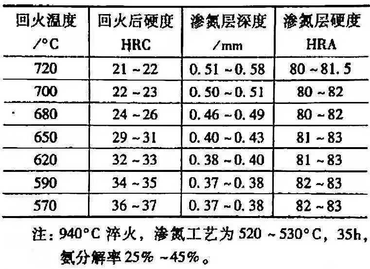 ▼表5 常用滲氮鋼的調質處理參數及力學性能