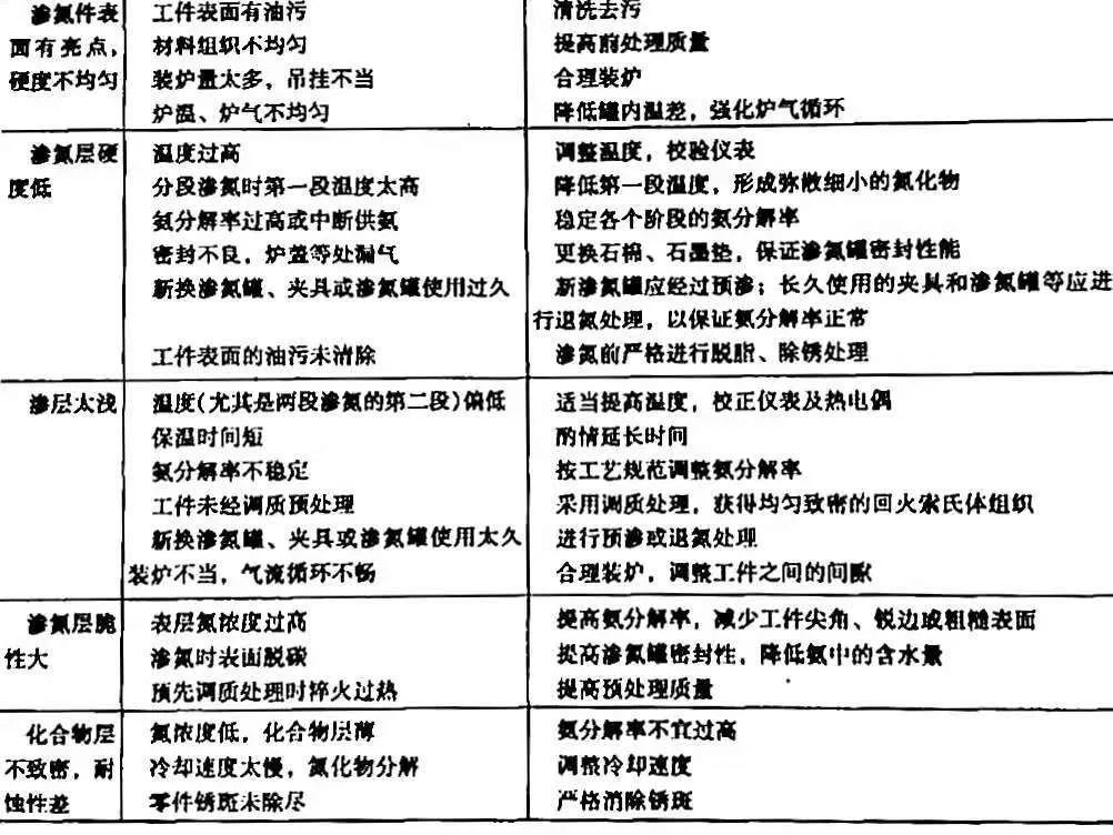 滲氮一些常見的缺陷及預防措施列于表11中 。