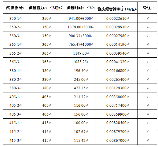 具體測(cè)定時(shí),首先選定溫度,在同一溫度下選擇不同應(yīng)力進(jìn)行蠕變?cè)囼?yàn),試驗(yàn)進(jìn)行至規(guī)定時(shí)間后停止。[1]試驗(yàn)方案的設(shè)計(jì)主要是從材料的服役條件出發(fā),確定溫度、時(shí)間、應(yīng)力等試驗(yàn)參數(shù)。