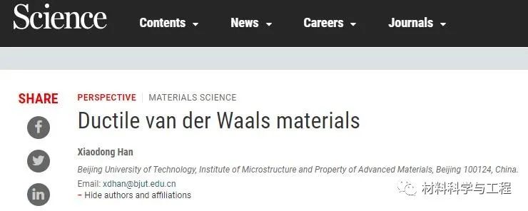 導(dǎo)讀:塊體形態(tài)下的范德瓦爾斯材料往往較脆,限制了其加工方式和應(yīng)用前景。《Science》上報(bào)道了InSe單晶超常規(guī)的塑性性能。對(duì)此,北京工業(yè)大學(xué)韓曉東教授發(fā)表評(píng)述,展望了其在鍛造加工和實(shí)際應(yīng)用方面的潛能。