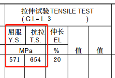 以某廠的質量證明書為例,某牌號的屈服、抗拉強度如下: