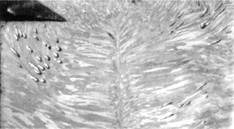 澆鑄時由模底和模壁產生的氣體來不及逸出而沿結晶方向形成氣孔