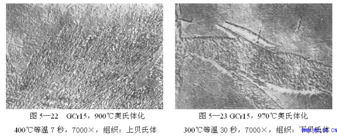 如果奧氏體晶粒比較粗大,冷卻速度又比較適宜,先共析相有可能呈針狀(片狀)形態(tài)與片狀珠光體混合存在,稱為魏氏組織 。亞共析鋼中魏氏組織的鐵素體的形態(tài)有片狀、羽毛狀或三角形,粗大鐵素體呈平行或三角形分布。它出現(xiàn)在奧氏體晶界,同時向晶內(nèi)生長。過共析鋼中魏氏組織滲碳體的形態(tài)有針狀或桿狀,它出現(xiàn)在奧氏體晶粒的內(nèi)部。