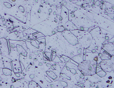 奧氏體一般由等軸狀的多邊形晶粒組成,晶粒內有孿晶。在加熱轉變剛剛結束時的奧氏體晶粒比較細小,晶粒邊界呈不規則的弧形。經過一段時間加熱或保溫,晶粒將長大,晶粒邊界可趨向平直化。鐵碳相圖中奧氏體是高溫相,存在于臨界點A1溫度以上,是珠光體逆共析轉變而成。當鋼中加入足夠多的擴大奧氏體相區的化學元素時,Ni,Mn等,則可使奧氏體穩定在室溫,如奧氏體鋼。