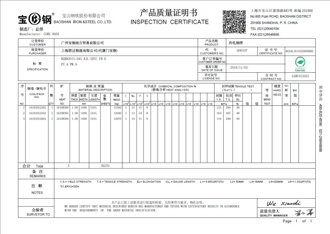 寶鋼股份 (質保書-質量證明書-查詢驗證網站)