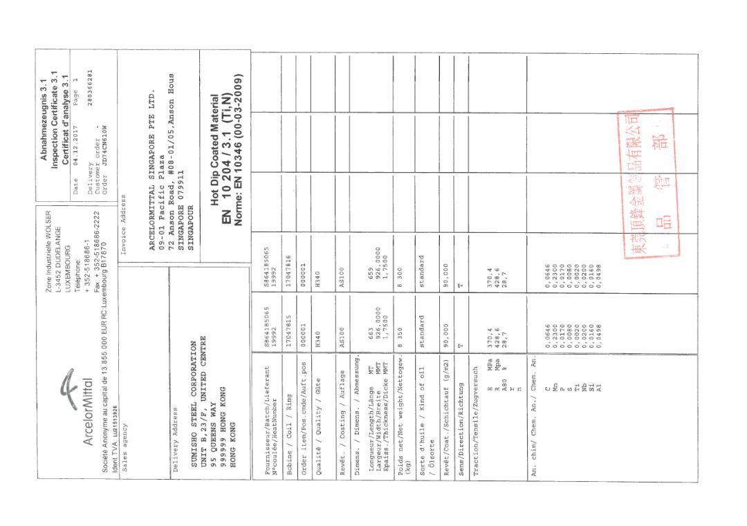 安陽鋼鐵股份有限公司(質保書-質量證明書-查詢驗證網站)