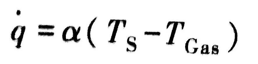 在HPGQ 過程開始時,淬火室中涌入大量淬火氣體。根據(jù)氣體類型和安裝的設(shè)備,達(dá)到預(yù)期的壓力水平需要4~20s的時間。隨后,氣流循環(huán)通過負(fù)載從工件中帶走熱量,同時氣體吸收的熱量被釋放到一個集成式熱交換器中。帶走的總熱量可用熱流密度(q) 來描述。根據(jù)式(1 ) , 熱流密度與傳熱系數(shù) α 成正比。傳熱系數(shù)是淬火中重要的物理參數(shù),且零件表面上局部 α 值的分布對淬火后的零件質(zhì)量有很重要的影響
