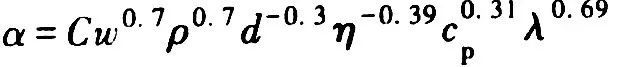 傳熱系數(shù) α 和工藝參數(shù)之間的理論關(guān)聯(lián)見式