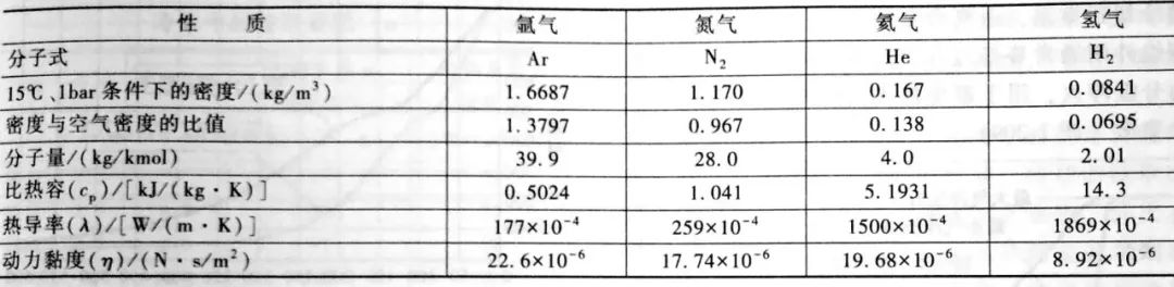 ▼表1 標(biāo)準(zhǔn)條件下(25℃、1bar) 氣體的熱物理性質(zhì)