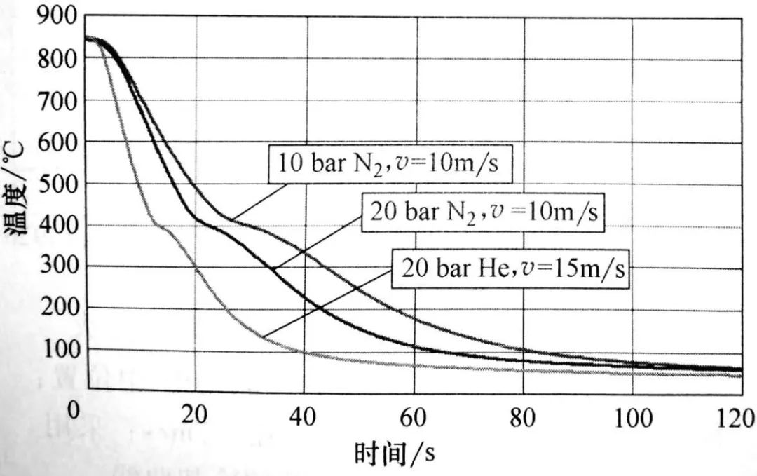 除了淬火壓力,為獲得更高的淬冷烈度,歷年來氣體流速也有所增加。現(xiàn)在,當(dāng)使用氮?dú)鈺r,采 用12m/s的平均氣體流速和20bar的淬火壓力。當(dāng)使