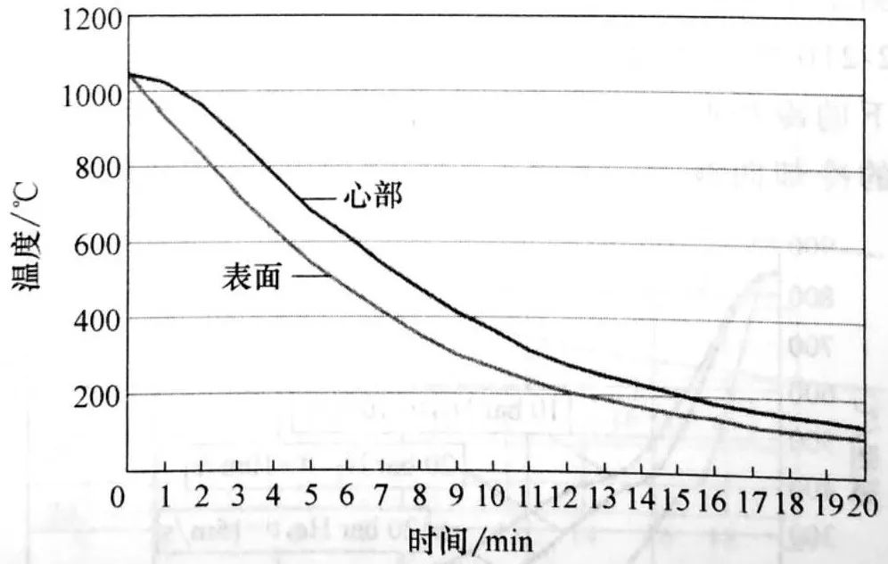 淬火時表面和心部的冷卻曲線