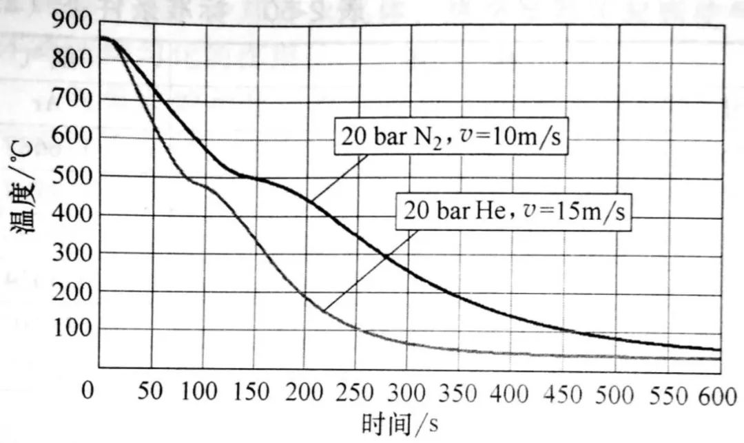 氮?dú)庠诠I(yè)上應(yīng)用廣泛。氦氣應(yīng)用于一需要更高淬火冷卻速度的場合,因為氦氣比氮?dú)飧p,安裝一個更大的葉輪就可以提供更高的氣流速而不用增加風(fēng)機(jī)功率。然而,氦氣的成本較高,每次淬火周期后需對其進(jìn)行重復(fù)利用,氬氣通常用于航空件的淬火。