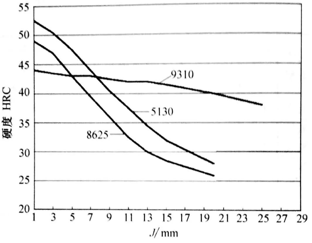 ▲圖15 表面硬化鋼的典型末端淬火曲線