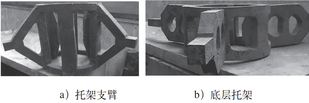 該套軸承內外圈的工裝在設計階段采用了計算機輔助設計。前期的方案論證、托架設計、料架設計、各類預改進等工作都采用3D方法在計算機輔助下進行了充分的討論,然后才形成設計方案提交加工。該套工裝目前已使用近6年,處理數(shù)千套軸承內外圈;另外,由于設計合理,工裝材質沒有使用價格昂貴的耐熱鋼,而是采用普通20鋼由鑄造廠家生產;使用多年后,報廢原因基本只是燒損,制造成本的經(jīng)濟性也十分明顯。圖13展示了托架使用多年后的燒蝕情況,可以看到并沒有發(fā)生明顯的開裂、塌縮現(xiàn)象。