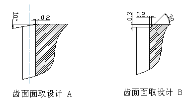 1.齒面面取設計:齒面面取目前有兩種常用方式,詳細如下: