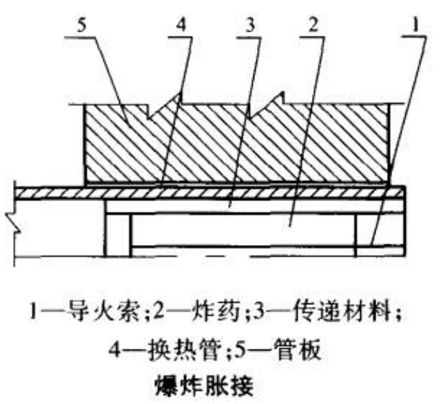 原理:通過實驗,靠定位成形的炸藥包的爆炸使換熱管瞬間向外擴張,達到脹接的目的。