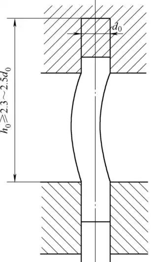 自由鐓粗中,當坯料的初期高度是直徑的2倍以上時,如圖5所示,由于材料失穩而導致坯料的折彎,從而形成折疊缺陷。為了預防材料的失穩,通常使用圖6形狀的模具進行預備成形。