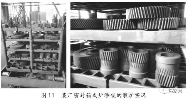 11所示某廠滲碳齒輪的裝爐狀況,其目的是盡可能多裝,這種操作方法,單位能耗很低,似乎非常先進。但是社會總能耗是低了還是高了?齒輪壽命低,不僅是熱處理能耗而且把前面煉鋼、鍛造的能耗、機械加工都賠進去了。因此應該全面地、辯證地看待熱處理單位能耗。表1中產品單位使用時間的總制造能耗。