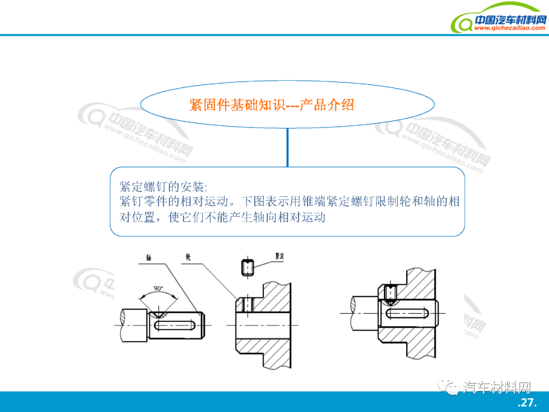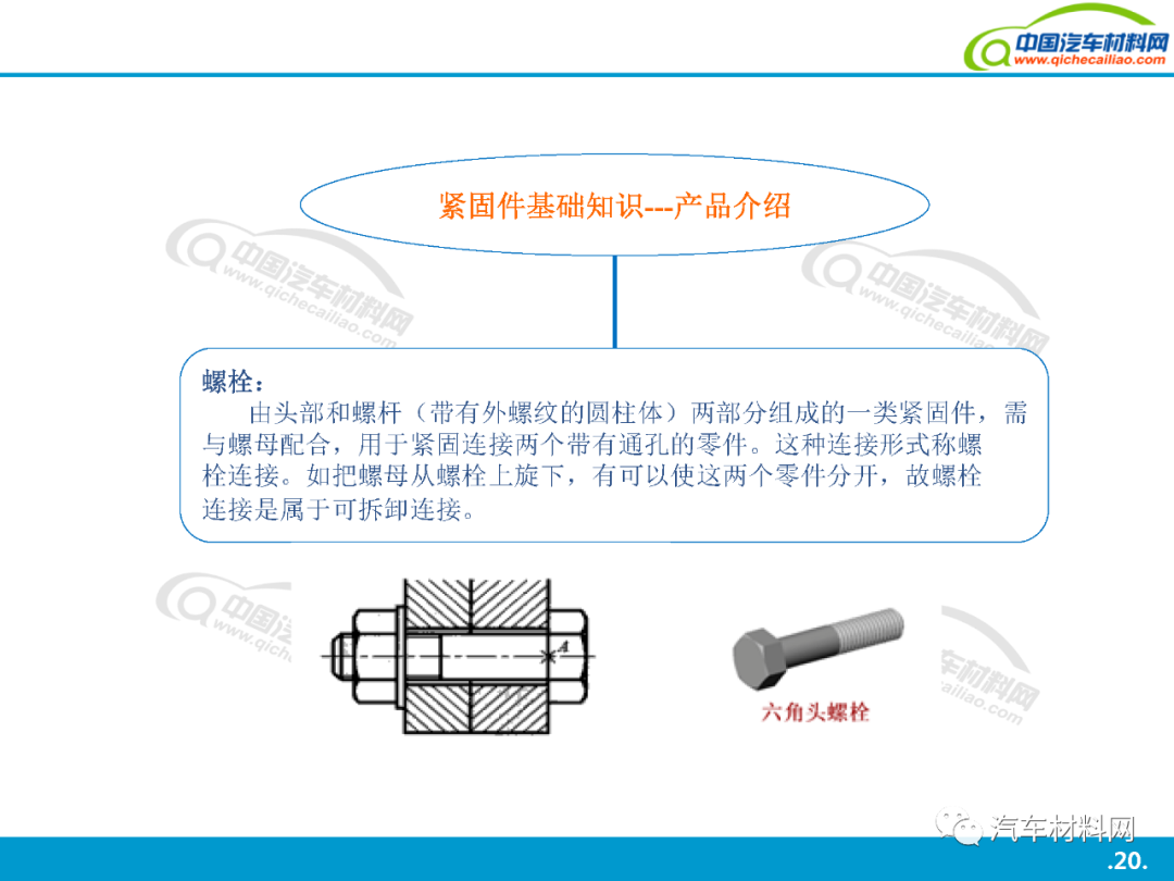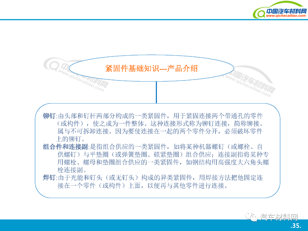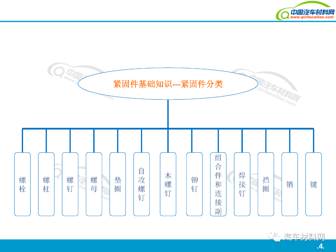 本站之有發(fā)表過(guò): 汽車上每個(gè)零件圖普 珩磨管工藝及其在汽車零部件制造中的應(yīng)用工藝介紹 中國(guó)到底有多少汽車工廠? 汽車金屬的腐蝕及防腐方法 汽車用金屬材料(碳鋼、合金鋼、鑄鐵)知識(shí)點(diǎn)全解析 全球最牛的十大汽車零部件供應(yīng)商簡(jiǎn)介 汽車零部件熱處理車間的管控技術(shù) 上海汽車產(chǎn)業(yè)鏈全景圖(含300家汽車零部件企業(yè)介紹) 等文章, 大家都說(shuō)好. 今天我們?cè)賮?lái)一起學(xué)習(xí)一下: 汽車緊固件詳解, 希望對(duì)大家有用. 共44頁(yè)P(yáng)PT