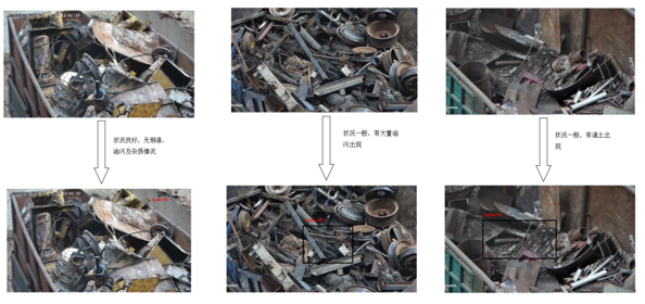 系統(tǒng)將依照客戶的人工評級規(guī)則,相應地對廢鋼雜質,渣土及油污,不符合當前級別的碎料等進行識別,并做對應的扣重處理。