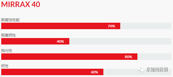 Mirrax 40 是一種經(jīng)過重熔冶煉的不銹鋼,預(yù)硬處理至40 HRC。