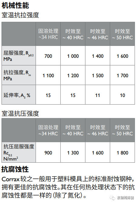 與其它傳統(tǒng)的不銹工具鋼比較,Corrax具有以下優(yōu)點: