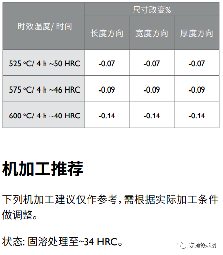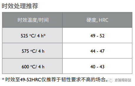 Corrax 以固溶處理狀態(tài)供貨,可直接使用。但若需熱處理到更高的硬度則可參照以下的推薦。