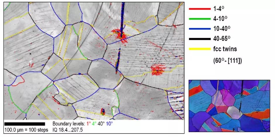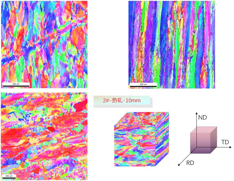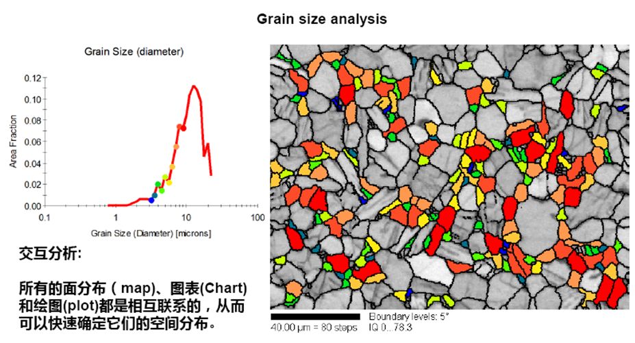 以研究各種現象,如熱機械處理過程、塑性變形過程、與取向關系有關的性能(成型性、磁性等)、界面性能(腐蝕、裂紋、熱裂等)、相鑒定等。