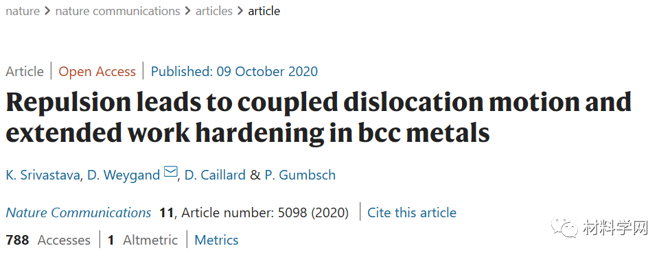 BCC金屬加工硬化新機制!直接觀察到螺位錯之間的互斥作用!