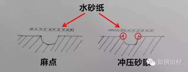 拿出一張水砂紙,輕輕的摩擦砂眼處(記得要溫柔些 *_*),凹坑邊緣輪廓發亮的是沖壓麻坑,輪廓不明顯的是原料麻點。