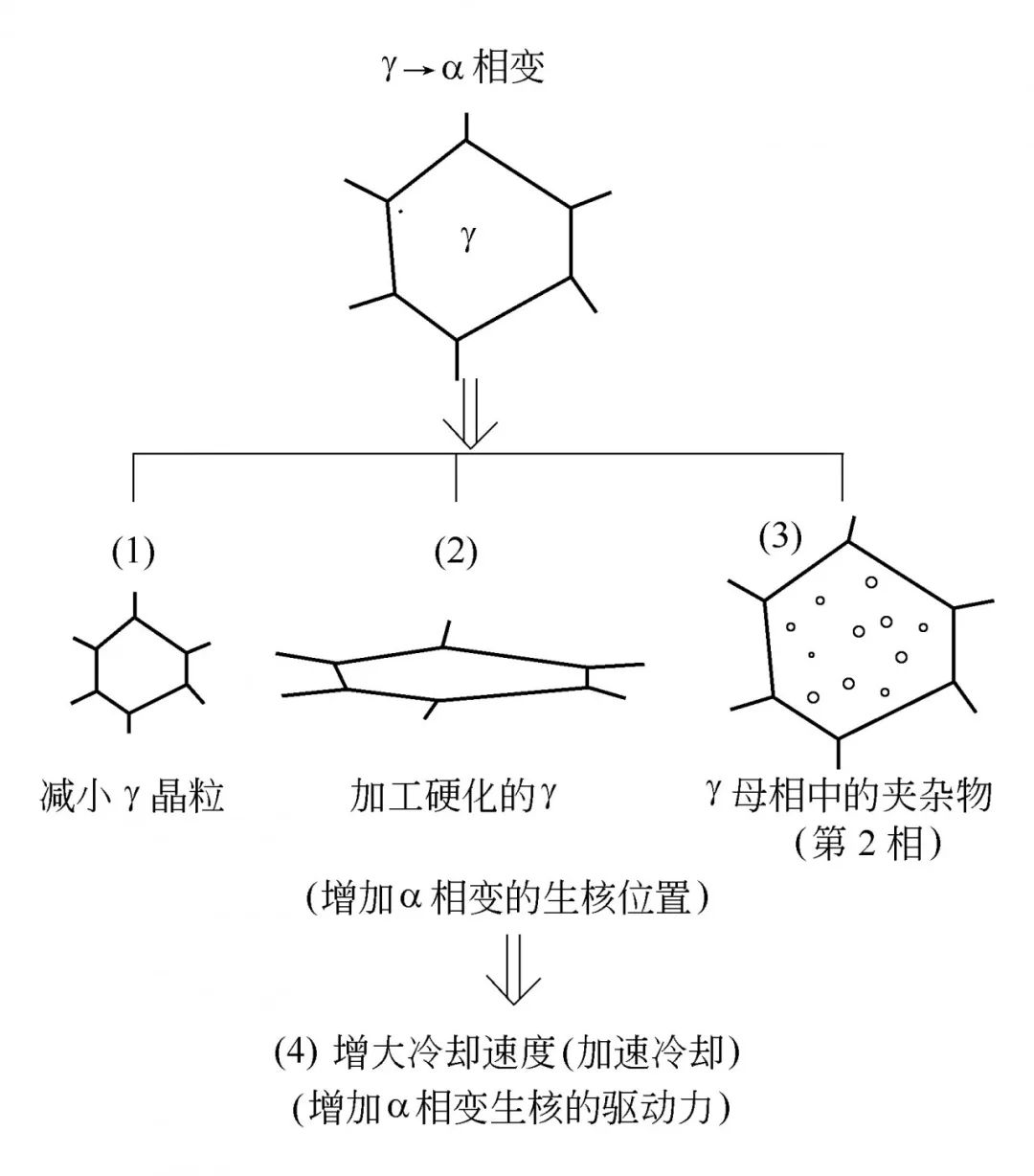 1  通過相變細化鐵素體晶粒的四種方法((1)~(4))