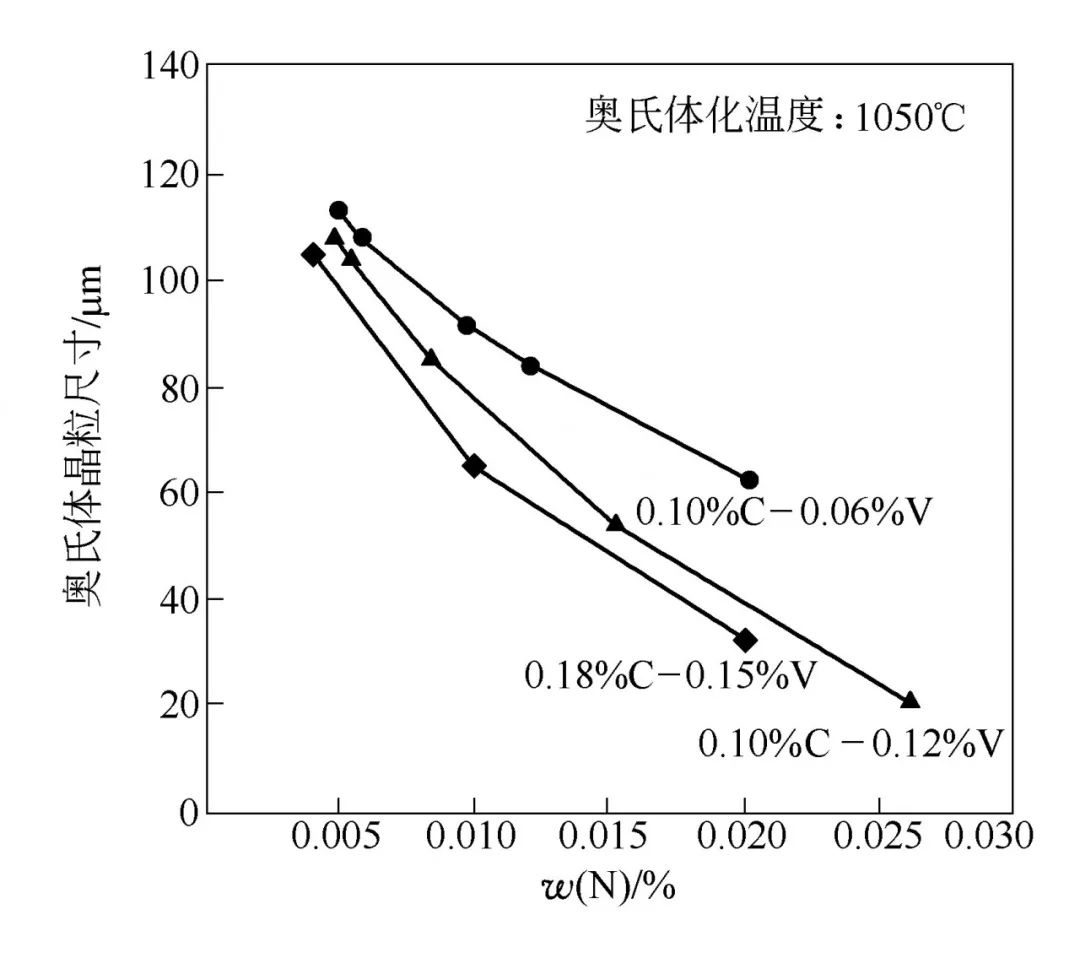 2  氮對釩鋼細化奧氏體晶粒尺寸的影響