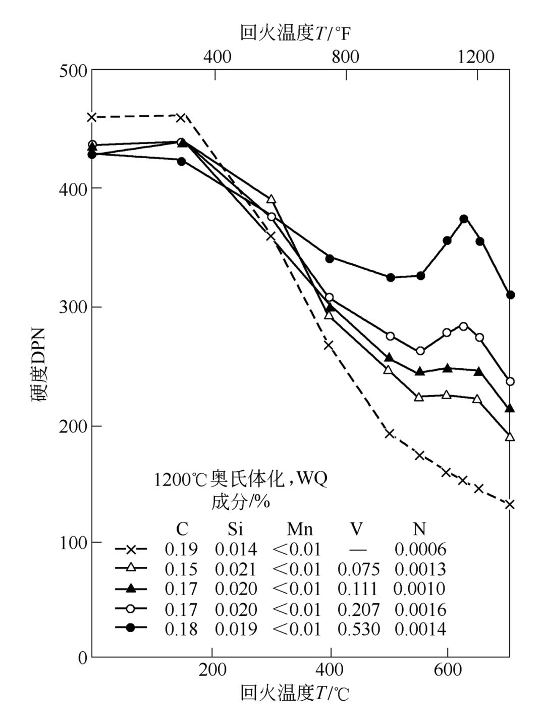 釩在淬火回火鋼中的應用要比釩在微合金化鋼中的歷史早得多。早在微合金化概念被提出之前,釩就在抗高溫軟化性能的淬火回火Cr-Mo鋼中得到應用。