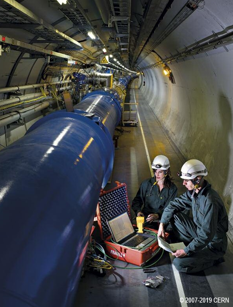大型強子對撞機位于瑞士日內瓦附近,是一個非常巨大的裝置,物理學家用它來探索宇宙中最小粒子的奧秘。對撞機的能量太強大,以至于一開始有人擔心它會產生一個能夠吞噬大塊星系的黑洞。幸運的是,加速器成功地撞碎了質子和離子,為粒子物理學研究提供了數據,并沒有出現人們擔心的事件。但是科學家們希望能提高加速器粒子束的強度,為即將開始新項目做準備,且大型強子對撞機到了進行常規維護的時候,因此,2018年底開始對加速器進行維護升級。