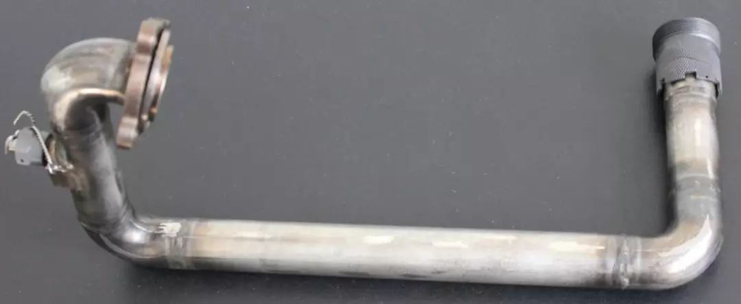 送檢襯套導管組件外觀形貌如圖1所示。斷裂油管襯套外觀如圖2所示,襯套上端為類似花鍵形狀,表層為滾花工藝;下端為螺紋,中間連接處表面光滑,花鍵端內圓有一小臺階。斷裂位置位于近花鍵端臺階處,斷裂方向沿襯套周向分為三段,其中左右兩段斷口長度接近半圓弧,分別標為1#、2#斷口;中間一段斷口位于花鍵兩R角中間,收集斷口時已丟失。