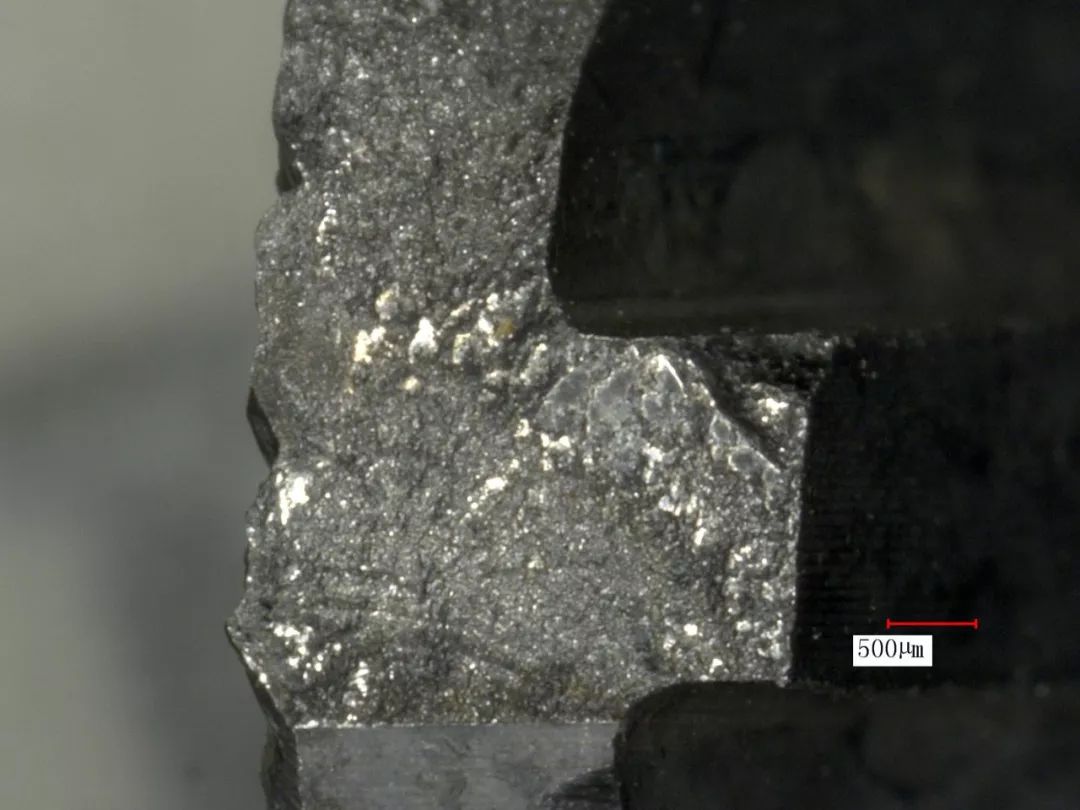 斷口的宏微觀觀察結果表明,油管襯套裂紋首先從花鍵端一凹槽兩R角處線性起源,宏觀可見疲勞弧線特征,源區附近宏觀可見明顯擴展棱線,而后斷口在整個圓周方向由外表面內表面擴展,在所有外表面滾花尖角處均可見清晰擴展棱線,為多點次疲勞源,擴展區為準解理特征,與人工打斷斷口的典型韌窩特征不同。由以上特征可判斷油管襯套的斷裂性質為疲勞斷裂。