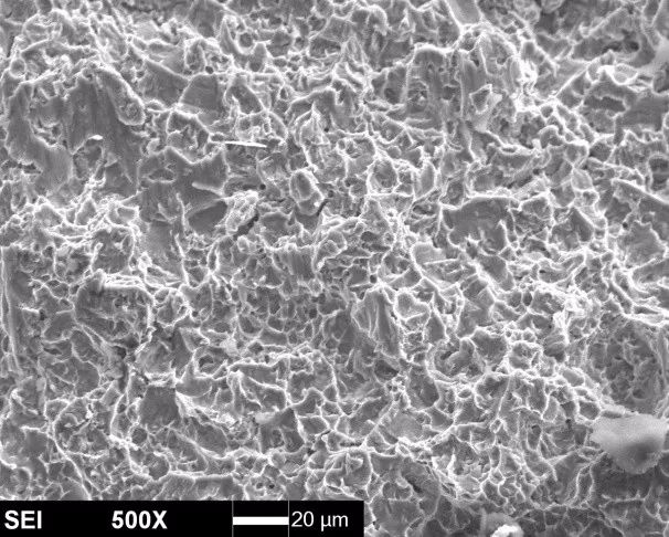 取斷口附近滾花表面試樣沿周向進行人工打斷,人工打斷斷口顯微形貌如圖5所示,為典型韌窩特征。