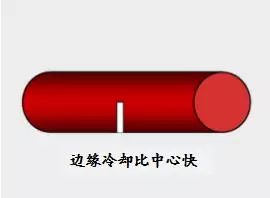當一個圓鋼棒從高達900°C的溫度淬火時,其表面部位將比中心部位冷卻更快。