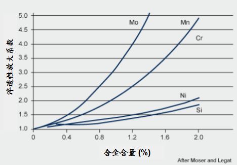 圖6 淬透性放大系數表示淬硬深度隨合金元素百分比增加的速度