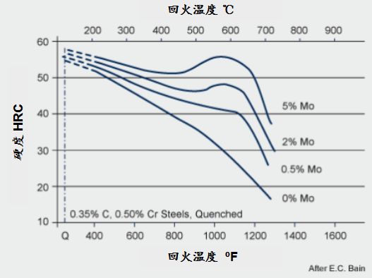 回火二次硬化效應是鉬在高速鋼和某些工具鋼及模具鋼中發揮的重要作用。