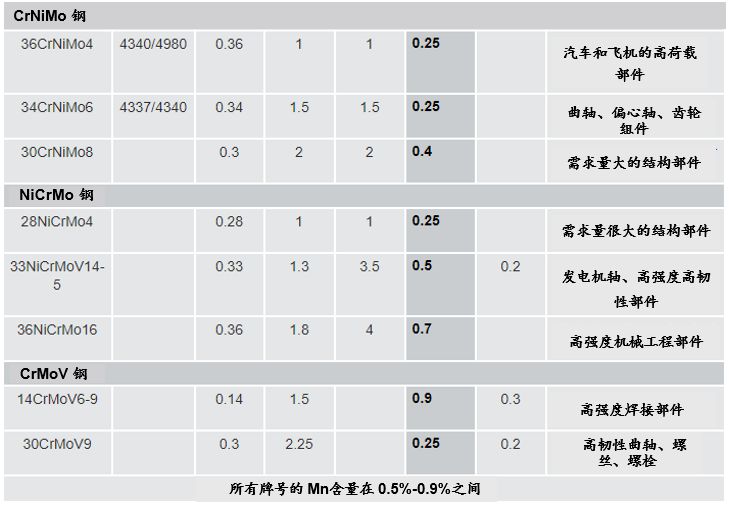 對于較高應力的部件,采用Cr-Ni-Mo 鋼,Ni和Cr含量均增加至1%-2%之間;