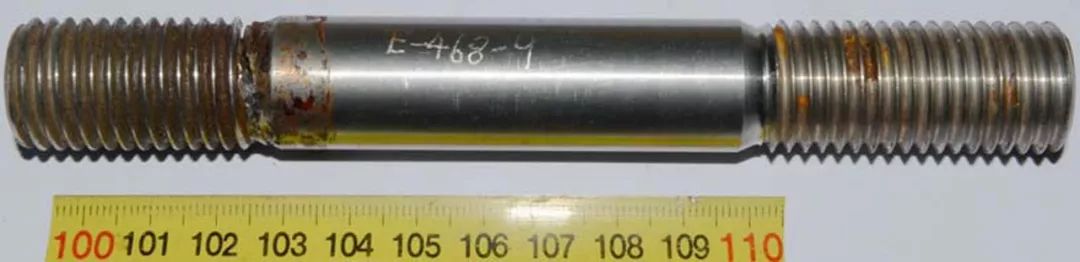 實際產(chǎn)品斷裂的雙頭螺栓,如圖1所示,其斷裂部位位于螺桿與帶螺紋的螺栓頭聯(lián)接處。