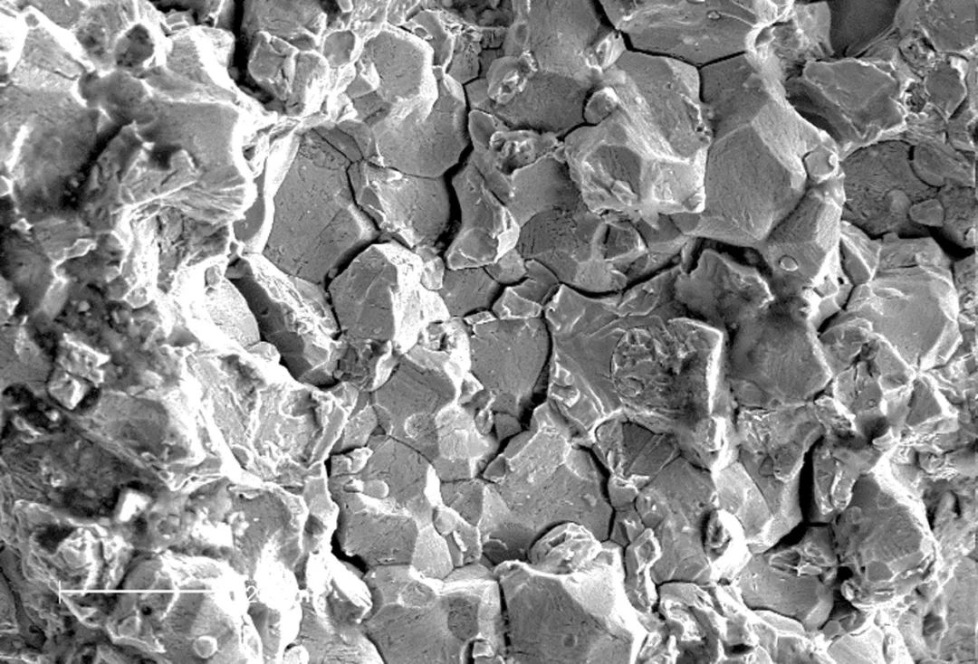 經(jīng)過酸洗和用毛刷去除腐蝕產(chǎn)物后的斷口形貌如圖2所示。采用掃描電子顯微鏡對去除腐蝕產(chǎn)物后的斷口的微觀特征進(jìn)行了觀察,結(jié)果表明,斷裂螺栓斷口呈現(xiàn)典型的沿晶斷裂特征,斷口呈現(xiàn)冰糖狀特征。