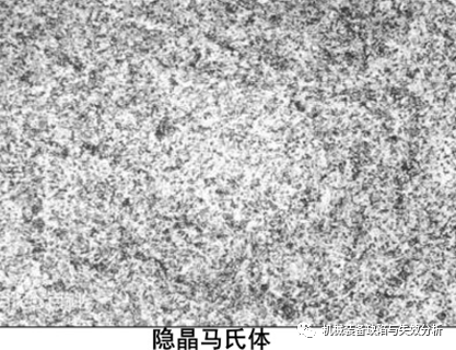 d)隱晶馬氏體:當最大的馬氏體片細小到光學顯微鏡不能分辨時,便成為“隱晶馬氏體”在生產中正常淬火得到的馬氏體,一般都是隱晶馬氏體;