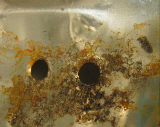 2、不銹鋼表面粘附有機物汁液(如瓜菜、面湯、痰等),在有水氧情況下,構成有機酸,長時間則有機酸對金屬表面的腐蝕。