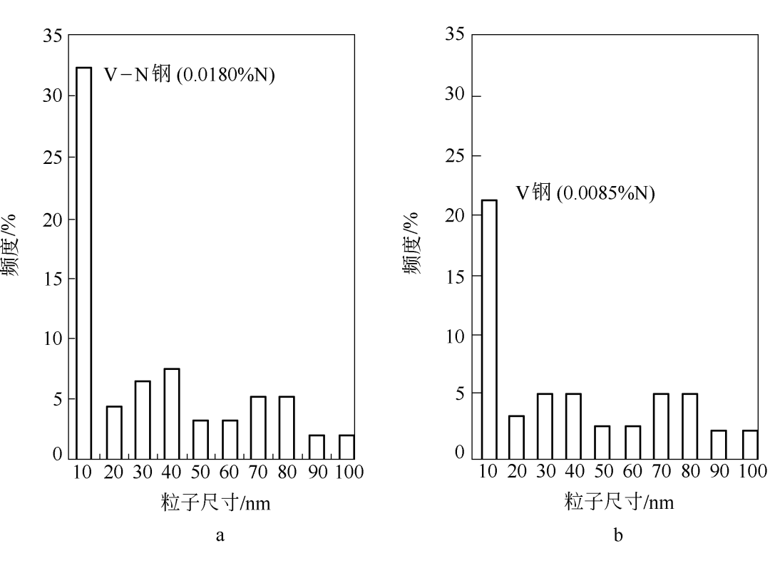 圖3 20MnSiV-N鋼和20MnSiV鋼V(C,N)析出粒子尺寸的分布